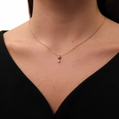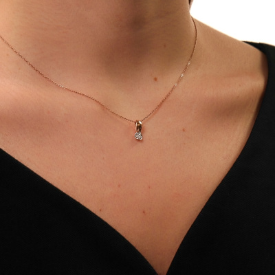 Подвеска с 1 бриллиантом природным, 0.05 карат, огранка круг 57 граней, цвет 3, чистота 6, тип огранки А; Розовое золото 585 пробы.