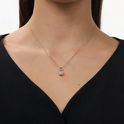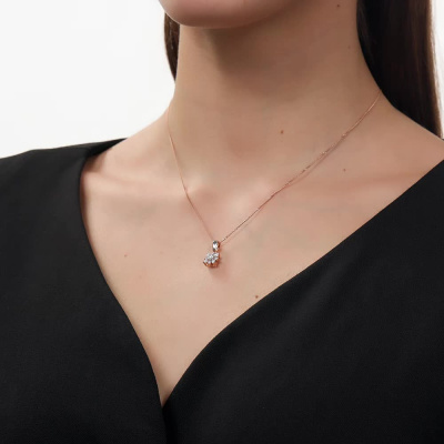 Подвеска с 1 бриллиантом природным, 0.18 карат, огранка круг 57 граней, цвет 3, чистота 6, тип огранки А; 4 бриллиантами природными, 0.19 карат, огранка круг 57 граней, цвет 3, чистота 6, тип огранки А; 4 бриллиантами природными, 0.09 карат, огранка круг 57 граней, цвет 3, чистота 6, тип огранки А; Розовое золото 585 пробы.