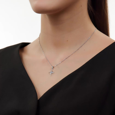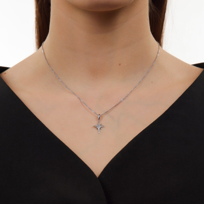 Подвеска с 12 бриллиантами природными, 0.02 карат, огранка круг 17 граней, цвет 2, чистота 2, тип огранки А; 1 топазом бесцветным природным, 0.04 карат; Белое золото 585 пробы.