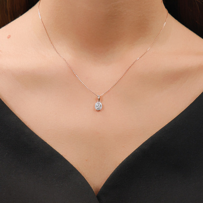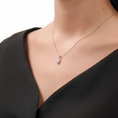 Подвеска с 1 бриллиантом природным, 0.09 карат, огранка круг 57 граней, цвет 4, чистота 5, тип огранки А; 24 бриллиантами природными, 0.08 карат, огранка круг 17 граней, цвет 2, чистота 2, тип огранки Б; Розовое золото 585 пробы.
