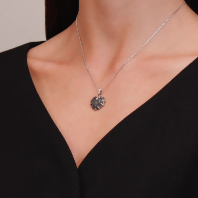 Подвеска с 1 бриллиантом природным, 0.004 карат, огранка круг 17 граней, цвет 2, чистота 2, тип огранки А; 44 бриллиантами природными, 0.09 карат, огранка круг 17 граней, цвет 2, чистота 2, тип огранки А; 80 бриллиантами черными природными облагороженными, 0.31 карат, огранка круг 57 граней, цвет 7, чистота 6, тип огранки А; 70 бриллиантами черными природными облагороженными, 0.13 карат, огранка круг 57 граней, цвет 7, чистота 6, тип огранки А; Белое золото 585 пробы.