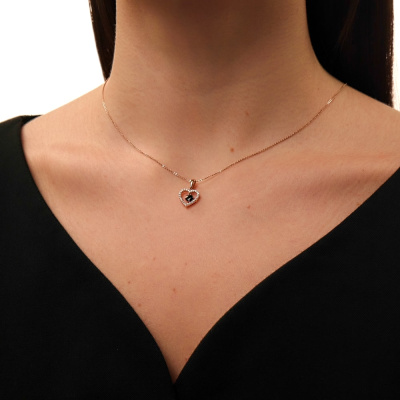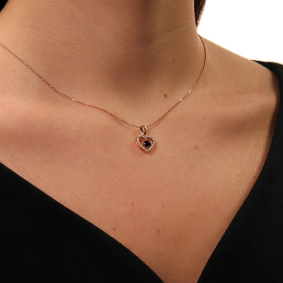 Подвеска с 27 бриллиантами природными, 0.12 карат, огранка круг 17 граней, цвет 2, чистота 2, тип огранки А; 1 сапфиром природным, 0.28 карат, цвет 2, чистота 2, тип огранки В; Розовое золото 585 пробы.