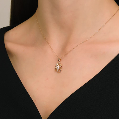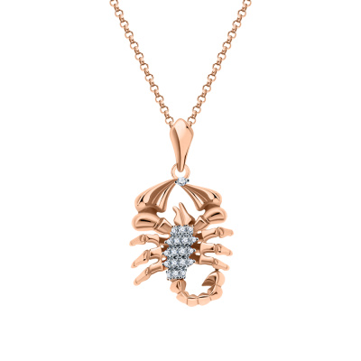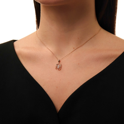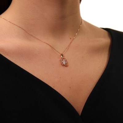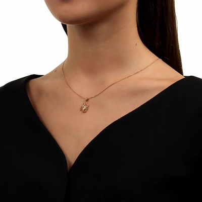 Подвеска с 1 бриллиантом природным, 0.004 карат, огранка круг 17 граней, цвет 2, чистота 2, тип огранки А; 18 бриллиантами природными, 0.03 карат, огранка круг 17 граней, цвет 2, чистота 2, тип огранки А; Розовое золото 585 пробы.