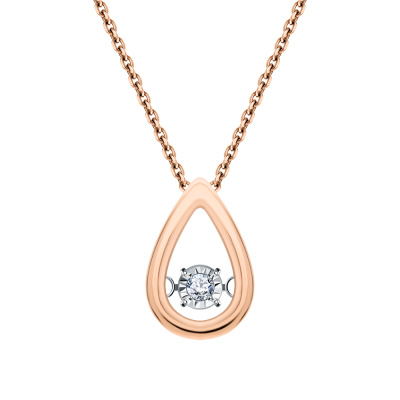 Подвеска с 1 бриллиантом природным, 0.03 карат, огранка круг 57 граней, цвет 3, чистота 6, тип огранки А; Розовое и белое золото 585 пробы.