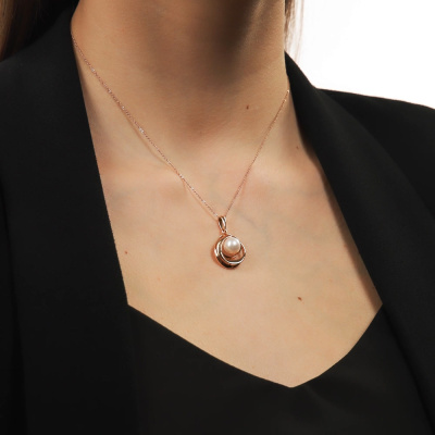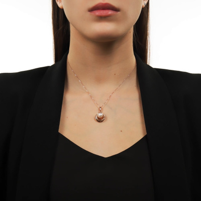 Подвеска с 1 жемчугом пресноводным культивированным белым, 3.98 карат; Розовое золото 585 пробы.
