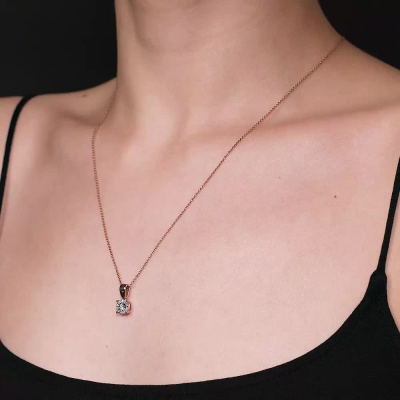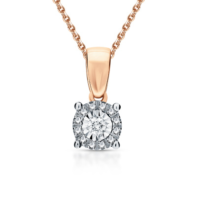 Подвеска с 1 бриллиантом природным, 0.06 карат, огранка круг 57 граней, цвет 4, чистота 5, тип огранки А; 12 бриллиантами природными, 0.05 карат, огранка круг 17 граней, цвет 2, чистота 2, тип огранки А; Розовое и белое золото 585 пробы.