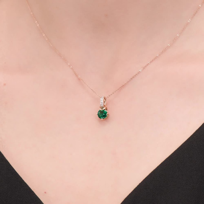 Подвеска с 5 бриллиантами природными, 0.02 карат, огранка круг 17 граней, цвет 2, чистота 2, тип огранки А; 1 гидротермальным изумрудом, 0.68 карат; Розовое золото 585 пробы.