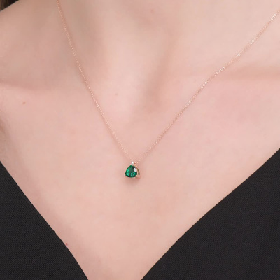 Подвеска с 1 бриллиантом природным, 0.004 карат, огранка круг 17 граней, цвет 2, чистота 2, тип огранки А; 1 гидротермальным изумрудом, 0.64 карат, тип огранки Б; Розовое золото 585 пробы.