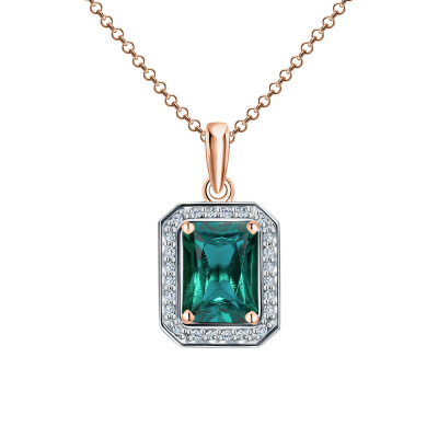 Подвеска с 24 бриллиантами природными, 0.11 карат, огранка круг 17 граней, цвет 2, чистота 2, тип огранки А; 1 гидротермальным изумрудом, 1.22 карат; Розовое золото 585 пробы.