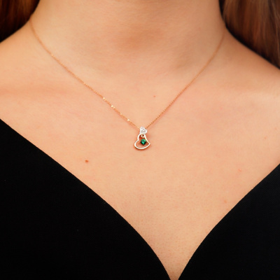 Подвеска с 6 бриллиантами природными, 0.02 карат, огранка круг 17 граней, цвет 2, чистота 2, тип огранки А; 1 гидротермальным изумрудом, 0.1 карат; Розовое золото 585 пробы.