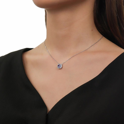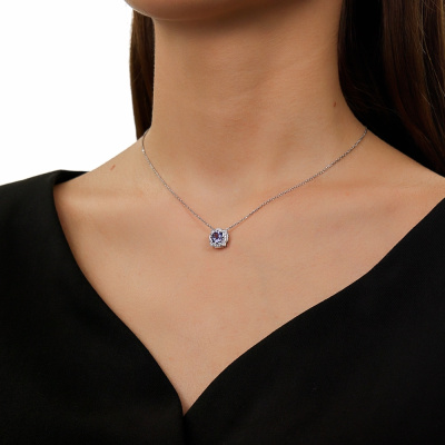 Подвеска с 8 бриллиантами природными, 0.07 карат, огранка круг 57 граней, цвет 3, чистота 6, тип огранки А; 12 бриллиантами природными, 0.08 карат, огранка круг 57 граней, цвет 3, чистота 6, тип огранки А; 1 танзанитом природным, 0.82 карат; Белое золото 585 пробы.