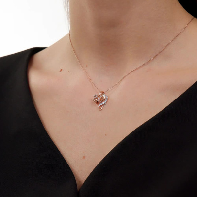 Подвеска с 4 бриллиантами природными, 0.01 карат, огранка круг 17 граней, цвет 2, чистота 2, тип огранки А; 8 бриллиантами природными, 0.02 карат, огранка круг 17 граней, цвет 2, чистота 2, тип огранки А; 1 горным хрусталем природным, 0.73 карат; Розовое золото 585 пробы.