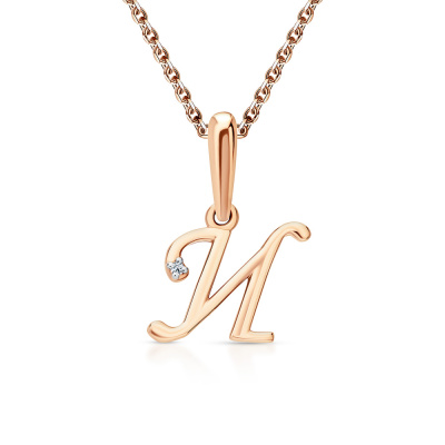 Подвеска с 1 бриллиантом природным, 0.002 карат, огранка круг 17 граней, цвет 2, чистота 2, тип огранки Б; Розовое золото 585 пробы.