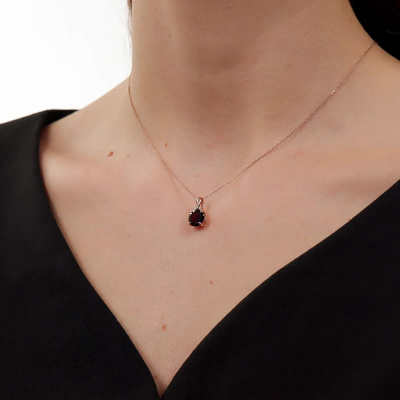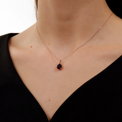 Подвеска с 3 бриллиантами природными, 0.005 карат, огранка круг 17 граней, цвет 2, чистота 2, тип огранки Б; 1 гранатом природным, 2.17 карат; Розовое золото 585 пробы.