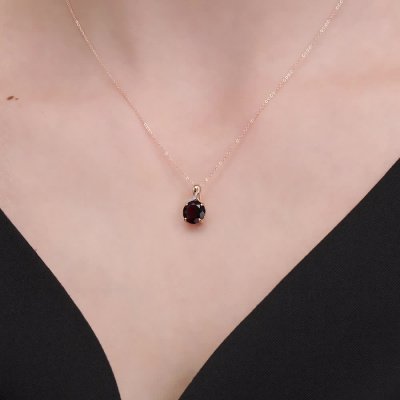 Подвеска с 3 бриллиантами природными, 0.005 карат, огранка круг 17 граней, цвет 2, чистота 2, тип огранки А; 1 гранатом природным, 2.32 карат; Розовое золото 585 пробы.