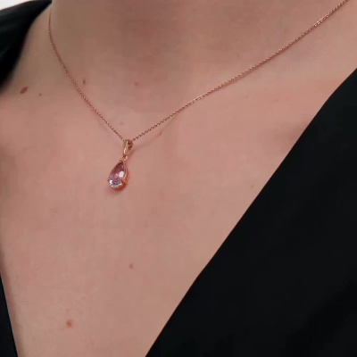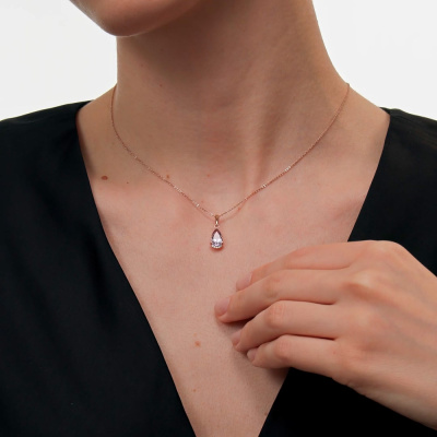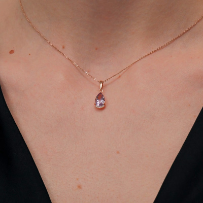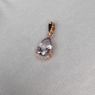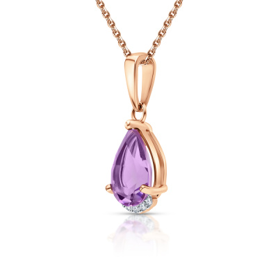 Подвеска с 5 бриллиантами природными, 0.02 карат, огранка круг 17 граней, цвет 2, чистота 2, тип огранки А; 1 аметистом природным, 1.15 карат; Розовое золото 585 пробы.