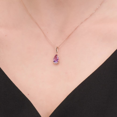 Подвеска с 5 бриллиантами природными, 0.02 карат, огранка круг 17 граней, цвет 2, чистота 2, тип огранки А; 1 аметистом природным, 1.14 карат; Розовое золото 585 пробы.