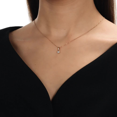Подвеска с 1 бриллиантом природным, 0.02 карат, огранка круг 57 граней, цвет 3, чистота 6, тип огранки А; 6 бриллиантами природными, 0.06 карат, огранка круг 57 граней, цвет 3, чистота 6, тип огранки А; Розовое золото 585 пробы.