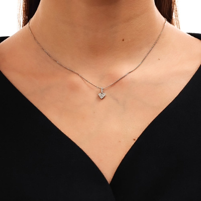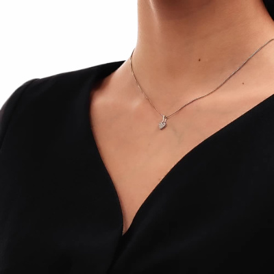 Подвеска с 3 бриллиантами природными, 0.04 карат, огранка круг 57 граней, цвет 3, чистота 6, тип огранки А; 12 бриллиантами природными, 0.05 карат, огранка круг 57 граней, цвет 3, чистота 6, тип огранки А; 5 бриллиантами природными, 0.01 карат, огранка круг 57 граней, цвет 3, чистота 6, тип огранки А; Белое золото 585 пробы.