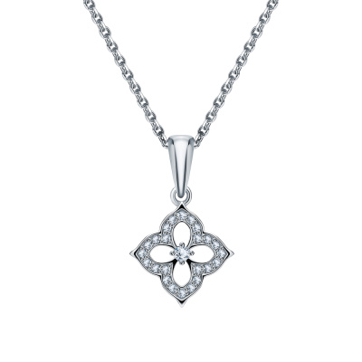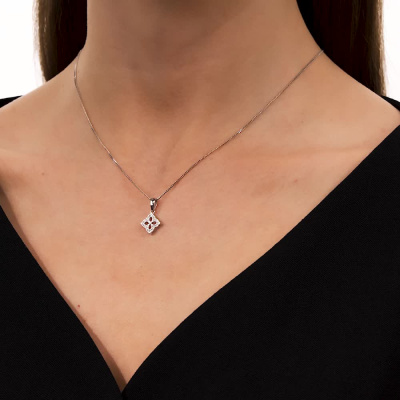 Подвеска с 1 бриллиантом природным, 0.01 карат, огранка круг 57 граней, цвет 4, чистота 6, тип огранки А; 24 бриллиантами природными, 0.05 карат, огранка круг 17 граней, цвет 2, чистота 2, тип огранки А; Белое золото 585 пробы.