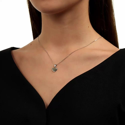 Подвеска с 1 бриллиантом природным, 0.008 карат, огранка круг 17 граней, цвет 2, чистота 2, тип огранки А; Белое золото 585 пробы.