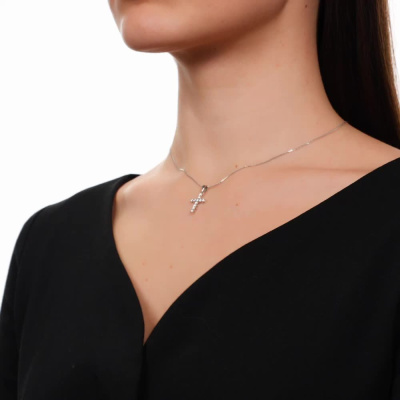 Подвеска с 11 бриллиантами природными, 0.4 карат, огранка круг 57 граней, цвет 4, чистота 5, тип огранки А; Белое золото 585 пробы.