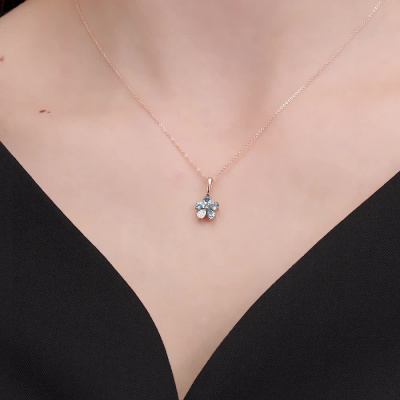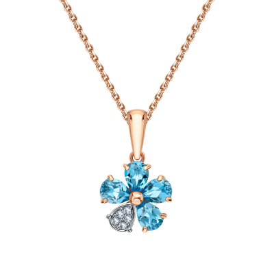 Подвеска с 5 бриллиантами природными, 0.01 карат, огранка круг 17 граней, цвет 2, чистота 2, тип огранки А; 4 топазами свисс природными, 0.7 карат; Розовое золото 585 пробы.