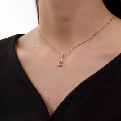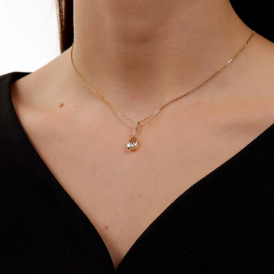 Подвеска с 5 бриллиантами природными, 0.02 карат, огранка круг 17 граней, цвет 2, чистота 2, тип огранки А; 1 празиолитом природным, 1.61 карат; 1 горным хрусталем природным, 0.22 карат; Желтое золото 585 пробы.