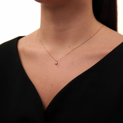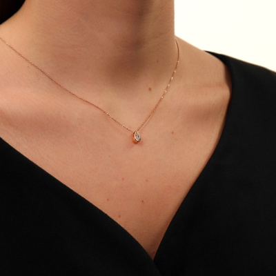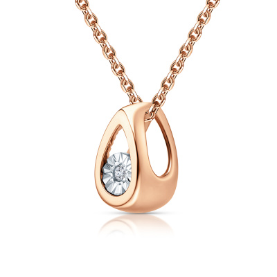 Подвеска с 1 бриллиантом природным, 0.007 карат, огранка круг 57 граней, цвет 3, чистота 6, тип огранки А; Розовое и белое золото 585 пробы.