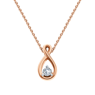 Подвеска с 2 бриллиантами природными, 0.01 карат, огранка круг 57 граней, цвет 3, чистота 6, тип огранки А; Розовое и белое золото 585 пробы.