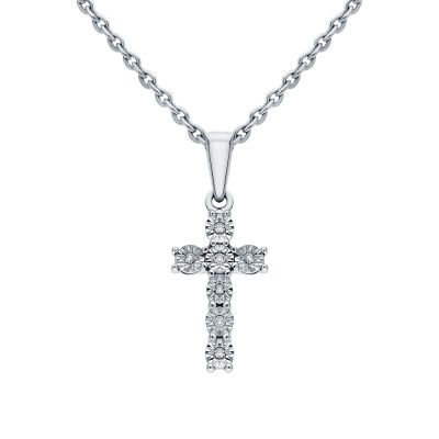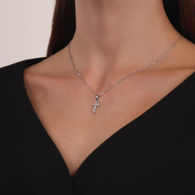 Подвеска с 7 бриллиантами природными, 0.02 карат, огранка круг 17 граней, цвет 2, чистота 2, тип огранки А; Белое золото 585 пробы.