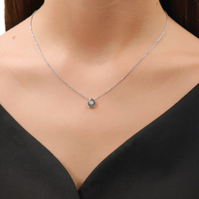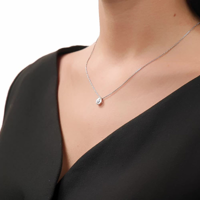 Подвеска с 1 бриллиантом природным, 0.008 карат, огранка круг 57 граней, цвет 3, чистота 6, тип огранки А; 7 бриллиантами природными, 0.02 карат, огранка круг 17 граней, цвет 2, чистота 2, тип огранки А; Белое золото 585 пробы.