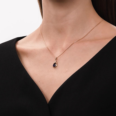 Подвеска с 1 сапфиром синтетическим, 1.29 карат; Розовое золото 585 пробы.