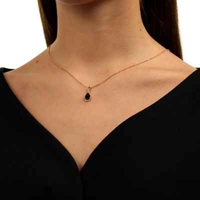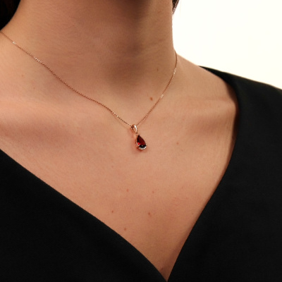 Подвеска с 5 бриллиантами природными, 0.02 карат, огранка круг 17 граней, цвет 2, чистота 2, тип огранки А; 1 гранатом природным, 1.54 карат; Розовое золото 585 пробы.