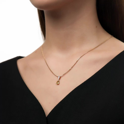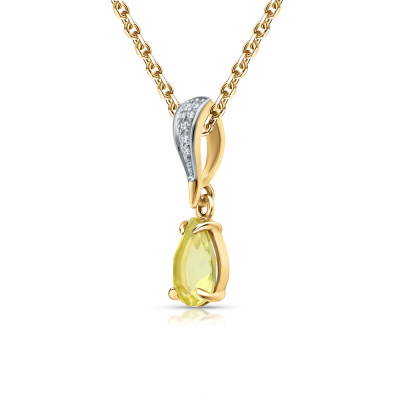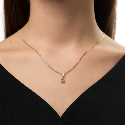 Подвеска с 4 бриллиантами природными, 0.01 карат, огранка круг 17 граней, цвет 2, чистота 2, тип огранки Б; 3 бриллиантами природными, 0.006 карат, огранка круг 17 граней, цвет 2, чистота 2, тип огранки А; 1 кварцем лимонным природным, 0.63 карат; Желтое золото 585 пробы.