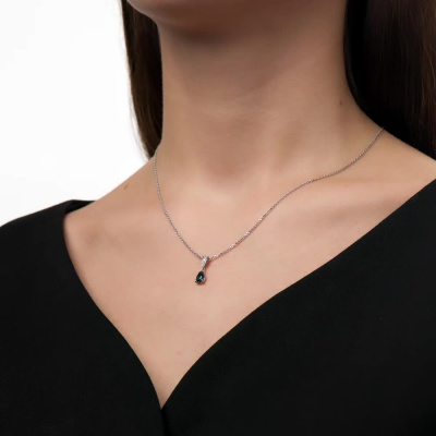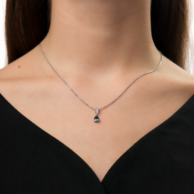Подвеска с 4 бриллиантами природными, 0.01 карат, огранка круг 17 граней, цвет 2, чистота 2, тип огранки А; 3 бриллиантами природными, 0.005 карат, огранка круг 17 граней, цвет 2, чистота 2, тип огранки А; 1 топазом лондон природным, 0.76 карат; Белое золото 585 пробы.