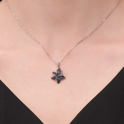 Подвеска с 22 сапфирами природными, 0.21 карат, цвет 2, чистота 2, тип огранки В; 31 сапфиром природным, 0.19 карат, цвет 2, чистота 2, тип огранки В; Белое золото 585 пробы.