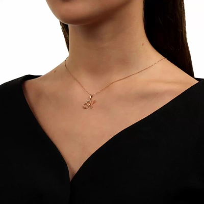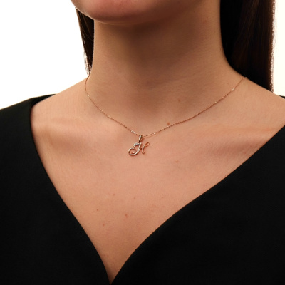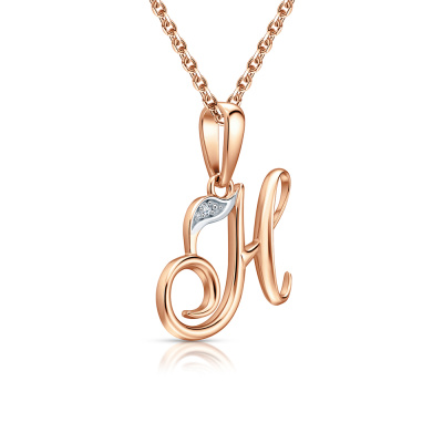 Подвеска с 1 бриллиантом природным, 0.004 карат, огранка круг 17 граней, цвет 2, чистота 2, тип огранки А; Розовое золото 585 пробы.