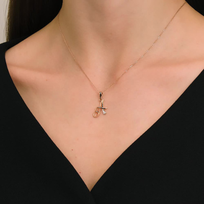 Подвеска с 1 бриллиантом природным, 0.004 карат, огранка круг 17 граней, цвет 2, чистота 2, тип огранки А; Розовое золото 585 пробы.