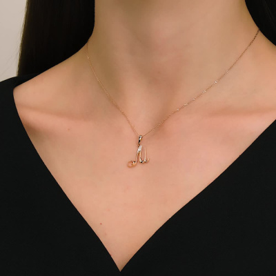Подвеска с 1 бриллиантом природным, 0.004 карат, огранка круг 17 граней, цвет 2, чистота 2, тип огранки А; Розовое золото 585 пробы.
