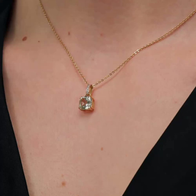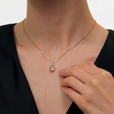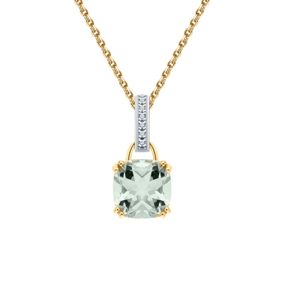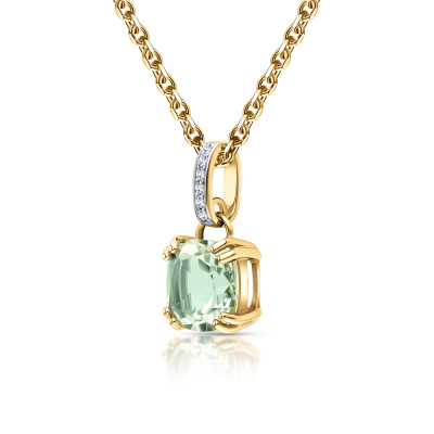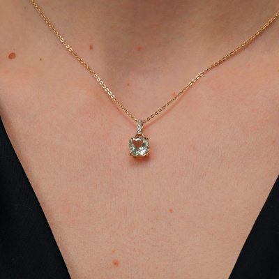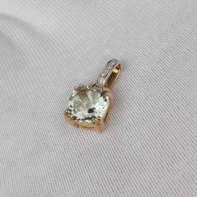 Подвеска с 6 бриллиантами природными, 0.01 карат, огранка круг 17 граней, цвет 2, чистота 2, тип огранки А; 1 празиолитом природным, 1.94 карат; Желтое золото 585 пробы.