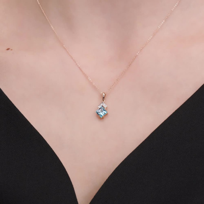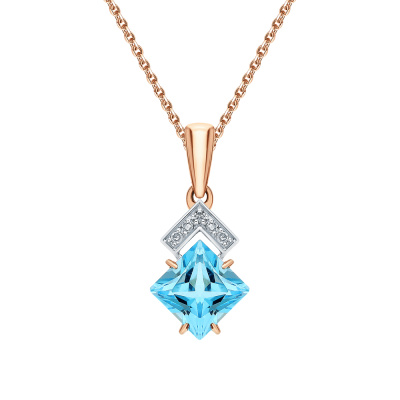 Подвеска с 5 бриллиантами природными, 0.02 карат, огранка круг 17 граней, цвет 2, чистота 2, тип огранки А; 1 топазом свисс природным, 1.33 карат; Розовое золото 585 пробы.