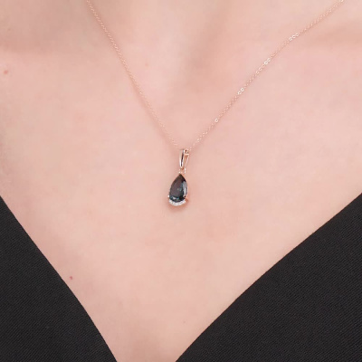 Подвеска с 5 бриллиантами природными, 0.02 карат, огранка круг 17 граней, цвет 2, чистота 2, тип огранки А; 1 топазом лондон природным, 1.34 карат; Розовое золото 585 пробы.