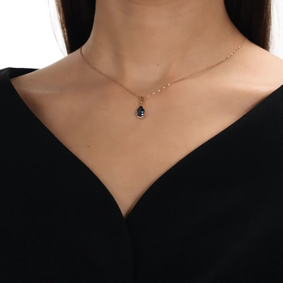 Подвеска с 5 бриллиантами природными, 0.02 карат, огранка круг 17 граней, цвет 2, чистота 2, тип огранки А; 1 топазом лондон природным, 1.4 карат; Розовое золото 585 пробы.