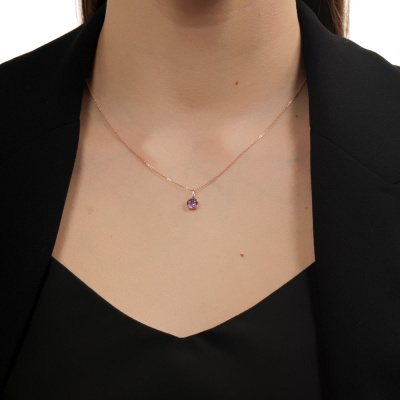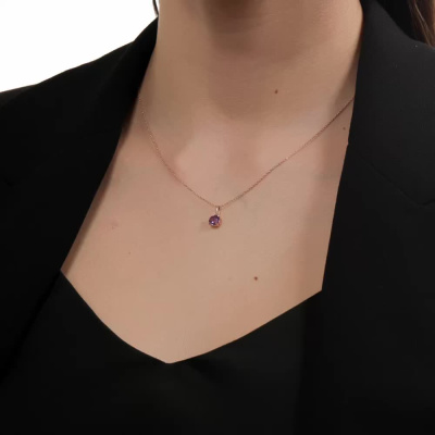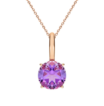 Подвеска с 1 аметистом природным, 0.71 карат; Розовое золото 585 пробы.