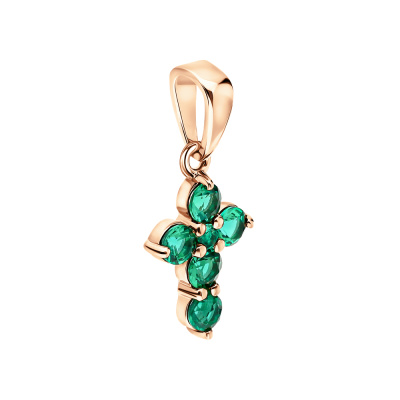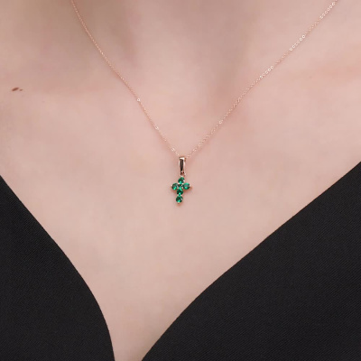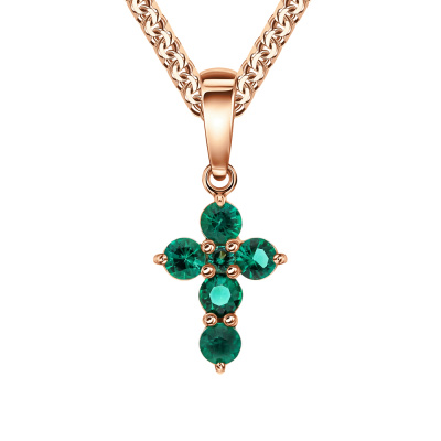 Подвеска с 5 гидротермальными изумрудами, 0.27 карат; 1 гидротермальным изумрудом, 0.02 карат; Розовое золото 585 пробы.