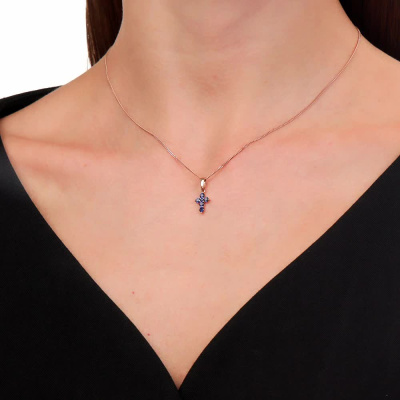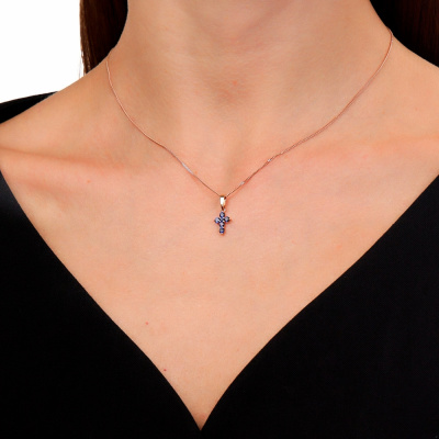 Подвеска с 5 сапфирами синтетическими, 0.38 карат; 1 сапфиром синтетическим, 0.02 карат; Розовое золото 585 пробы.