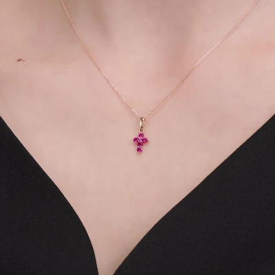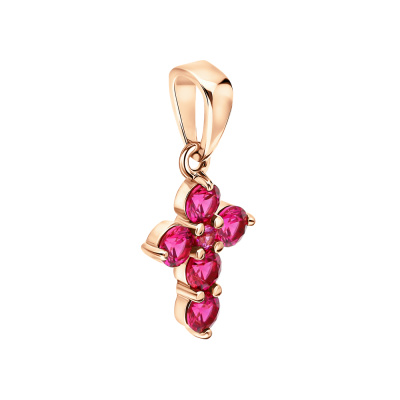 Подвеска с 5 рубинами синтетическими, 0.39 карат; 1 рубином синтетическим, 0.01 карат; Розовое золото 585 пробы.