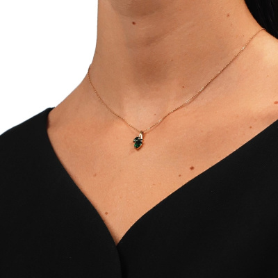 Подвеска с 1 гидротермальным изумрудом, 0.61 карат; 1 гидротермальным изумрудом, 0.16 карат; 1 гидротермальным изумрудом, 0.03 карат; Розовое золото 585 пробы.