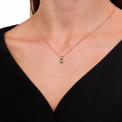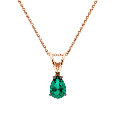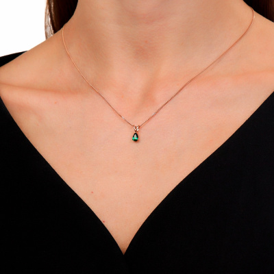Подвеска с 1 гидротермальным изумрудом, 0.34 карат; Розовое золото 585 пробы.